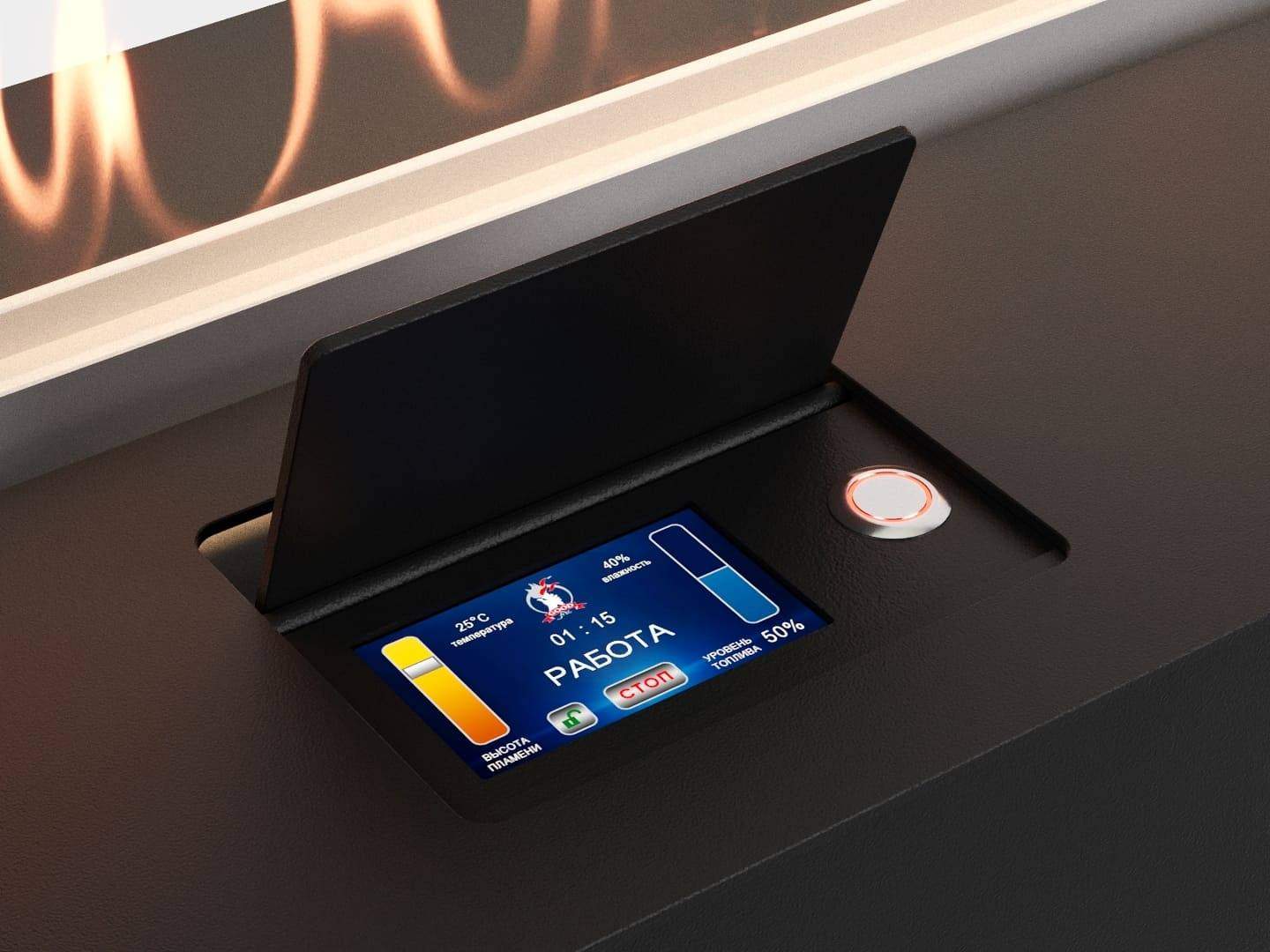 Управление моделью 800 RC Black осуществляется с помощью интерактивного дисплея / пультом дистанционного управления или смартфоном (через Bluetooth соединение, а не WiFi как было в предыдущей версии камина, что позволяет иметь более надежное соединение не привязаное к работе роутера).