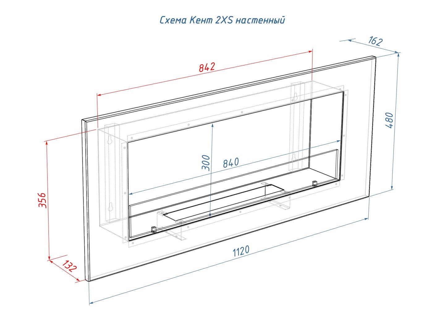 Описание настенного биокамина Lux Fire "КЕНТ 2 Н" XS