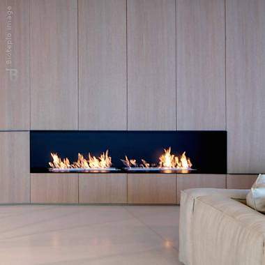 Очаг – это емкость куда заливается жидкое топливо. Емкость внутри заполняется керамическим материалом, который впитывает биотопливо, и в случае опрокидывания камина топливо не разливается. За счет этого конструкция стала полностью пожаробезопасной. Очаг встраивается в корпус из стали, который окрашивается специальной термостойкой краской, или же в заранее подготовленную нишу, изготовленную из негорючих материалов.