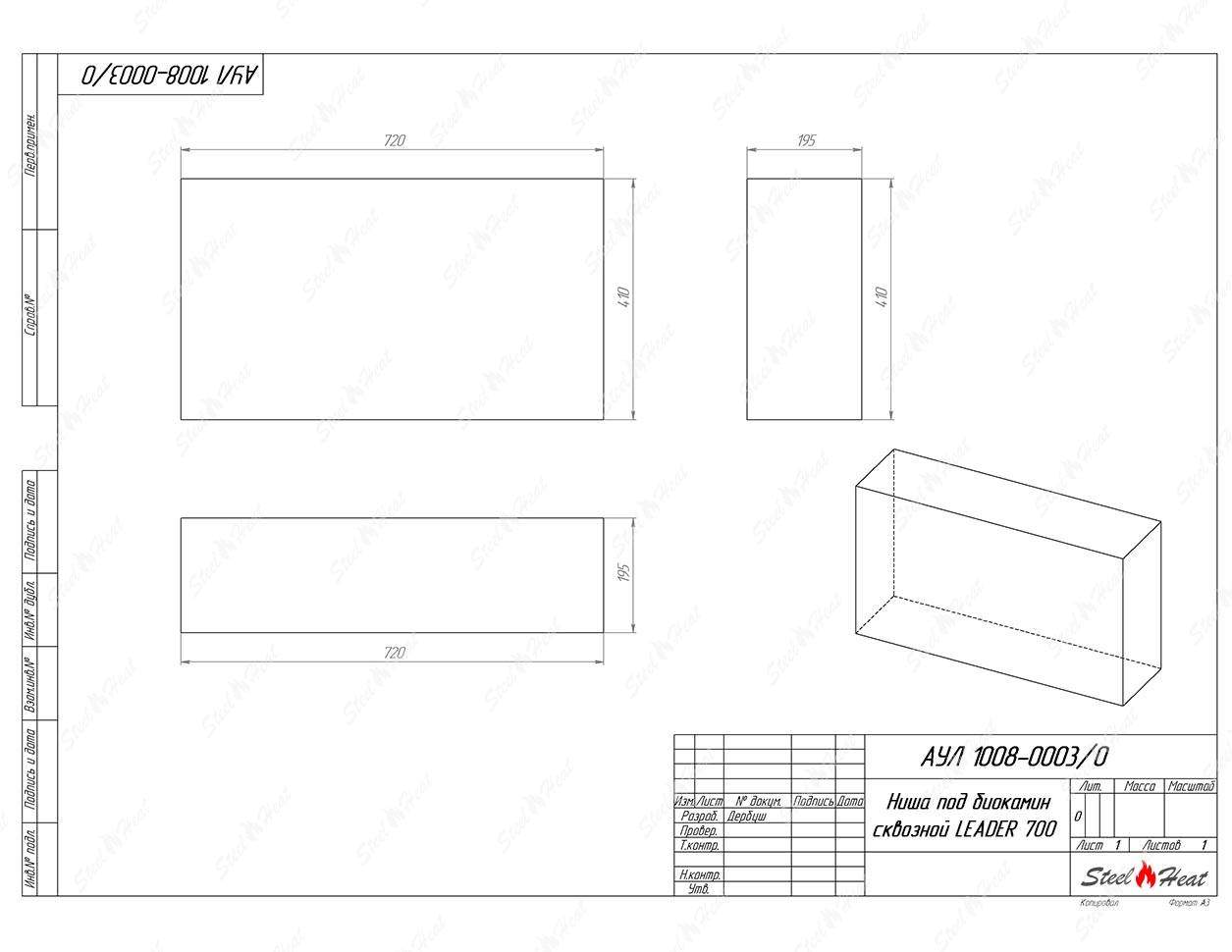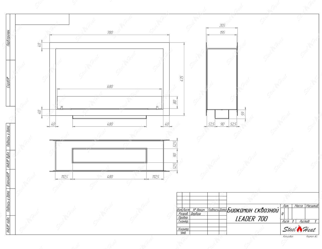Встраиваемый биокамин Биокамин сквозной SteelHeat Leader 700 предназначен для встраивания в глухие ниши из гипсокартона, кирпича, пеноблоков, бетона.