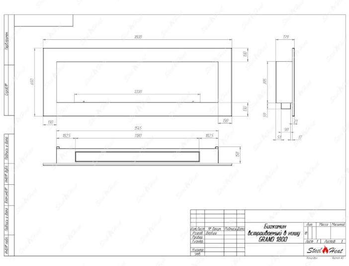 Встраиваемый Биокамин SteelHeat GRAND-D 1800 предназначен для встраивания в глухие ниши из гипсокартона, кирпича, пеноблоков, бетона.