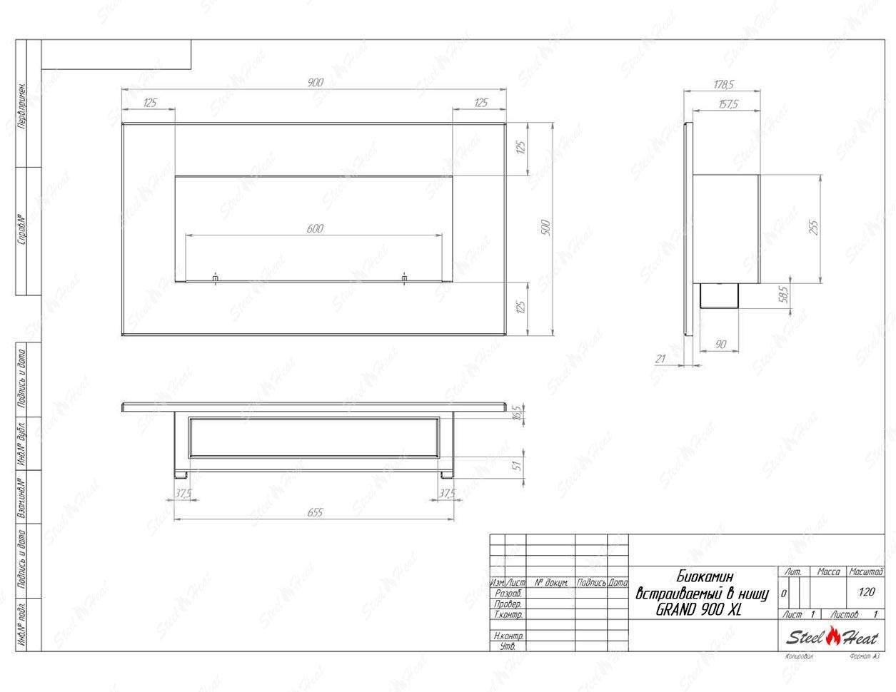 Встраиваемый Биокамин SteelHeat GRAND-V 900 XL предназначен для встраивания в глухие ниши из гипсокартона, кирпича, пеноблоков, бетона.