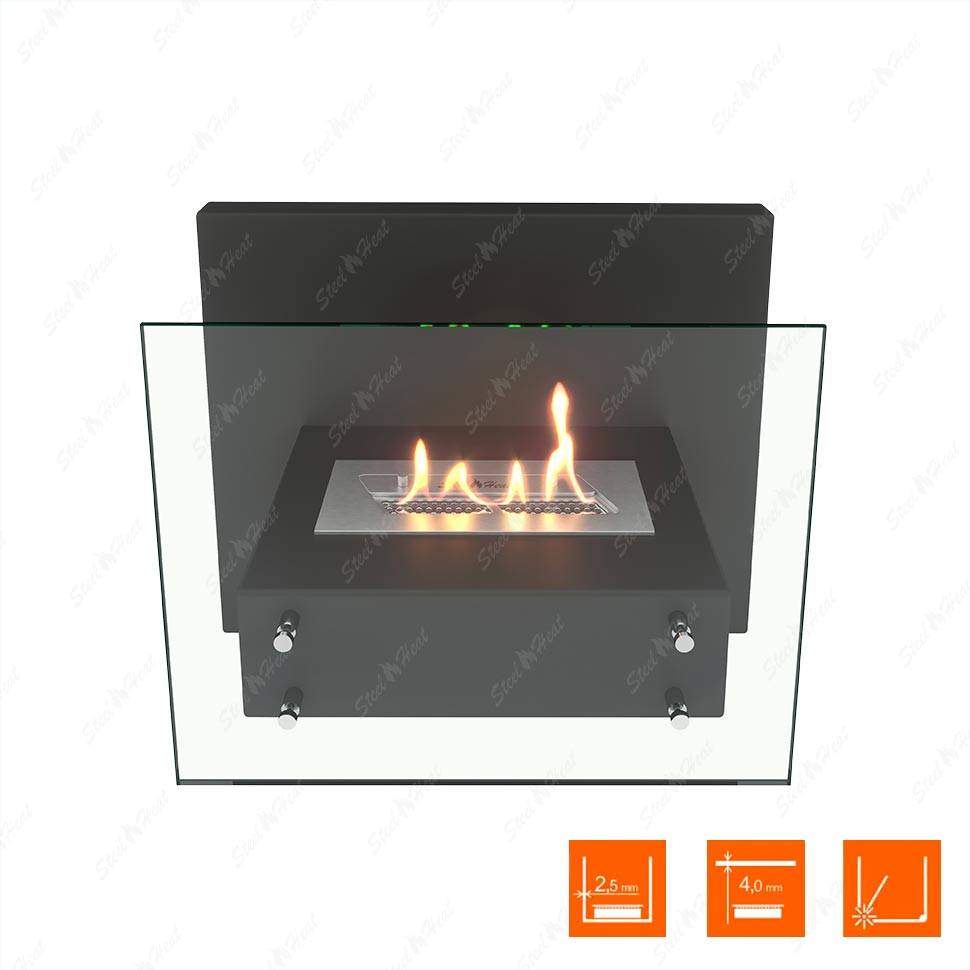 Очаг – это емкость куда заливается жидкое топливо. Емкость внутри заполняется керамическим материалом, который впитывает биотопливо, и в случае опрокидывания камина топливо не разливается. За счет этого конструкция стала полностью пожаробезопасной. Очаг встраивается в корпус из стали, который окрашивается специальной термостойкой краской, или же в заранее подготовленную нишу, изготовленную из негорючих материалов.