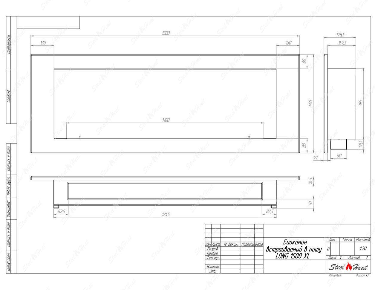 Встраиваемый Биокамин SteelHeat LONG 1500 XL предназначен для встраивания в глухие ниши из гипсокартона, кирпича, пеноблоков, бетона.