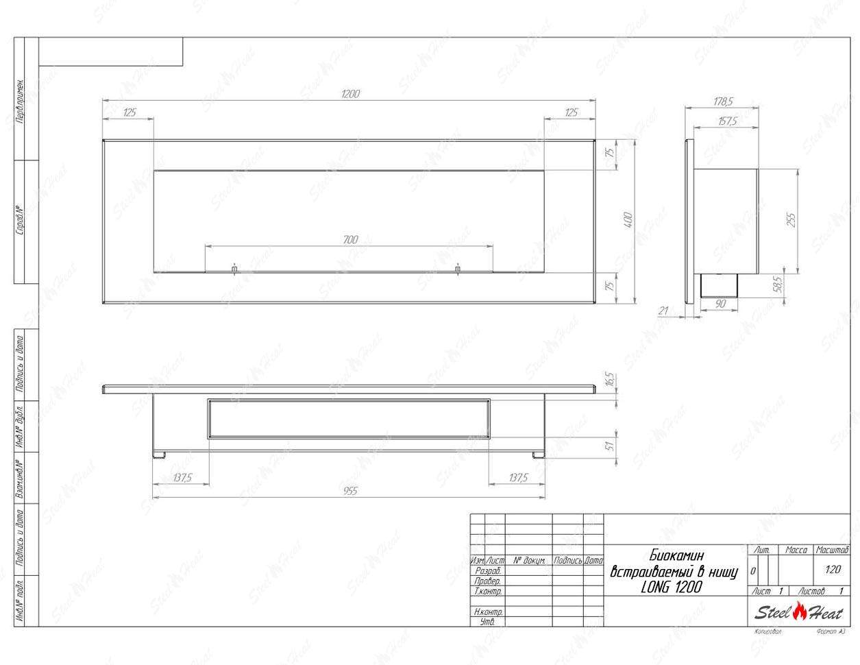 Встраиваемый Биокамин SteelHeat LONG-D 1200 предназначен для встраивания в глухие ниши из гипсокартона, кирпича, пеноблоков, бетона.