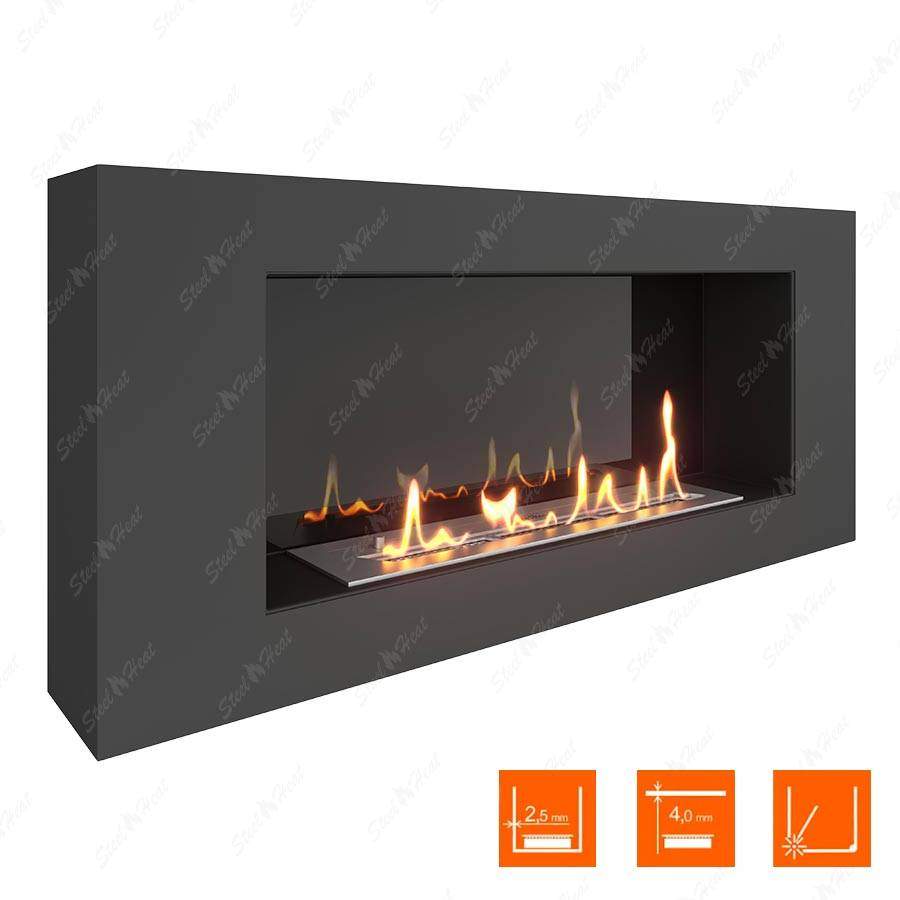 Очаг – это емкость куда заливается жидкое топливо. Емкость внутри заполняется керамическим материалом, который впитывает биотопливо, и в случае опрокидывания камина топливо не разливается. За счет этого конструкция стала полностью пожаробезопасной. Очаг встраивается в корпус из стали, который окрашивается специальной термостойкой краской, или же в заранее подготовленную нишу, изготовленную из негорючих материалов.