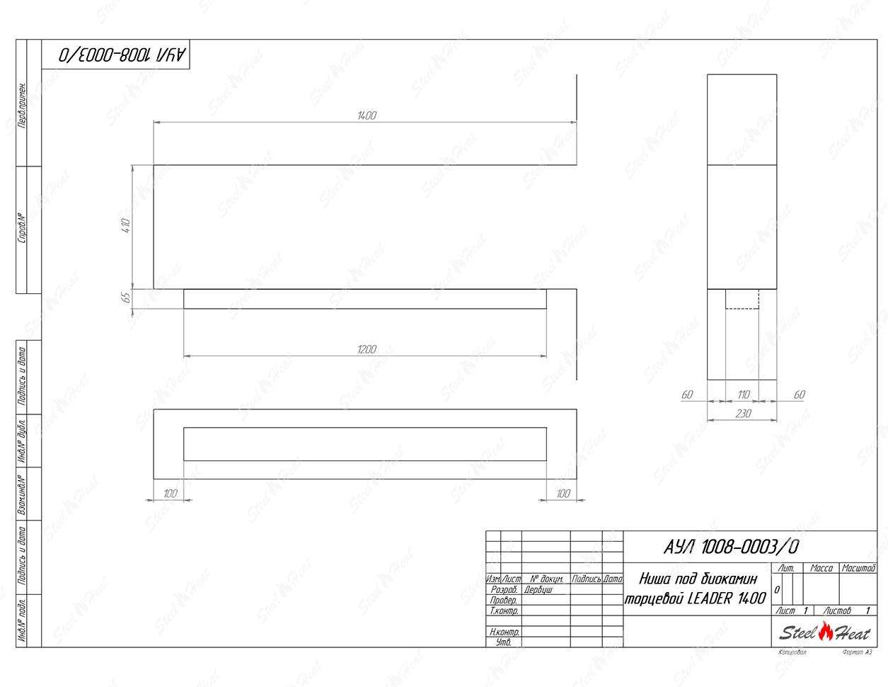 Биокамин торцевой SteelHeat Leader 1400