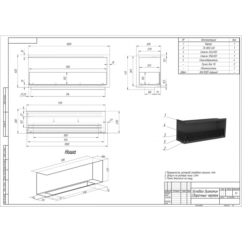 Биокамин угловой 1000G PremiumFire
