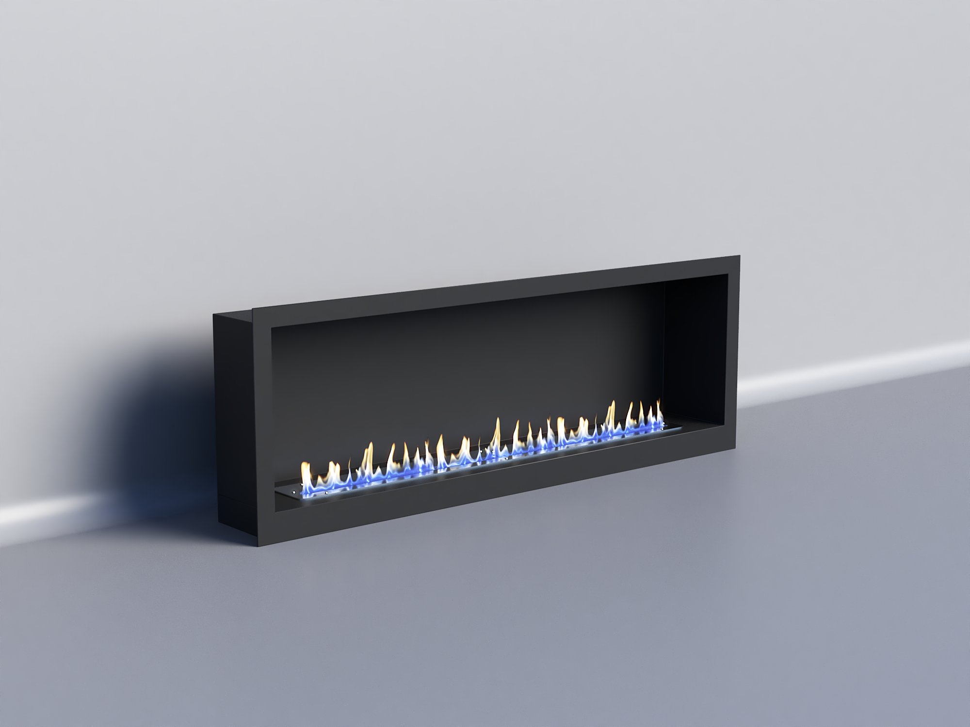 Очаг – это емкость куда заливается жидкое топливо. Емкость внутри заполняется керамическим материалом, который впитывает биотопливо, и в случае опрокидывания камина топливо не разливается. За счет этого конструкция стала полностью пожаробезопасной. Очаг встраивается в корпус из стали, который окрашивается специальной термостойкой краской, или же в заранее подготовленную нишу, изготовленную из негорючих материалов.