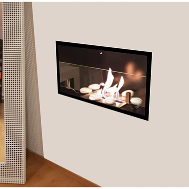 Очаг – это емкость куда заливается жидкое топливо. Емкость внутри заполняется керамическим материалом, который впитывает биотопливо, и в случае опрокидывания камина топливо не разливается. За счет этого конструкция стала полностью пожаробезопасной. Очаг встраивается в корпус из стали, который окрашивается специальной термостойкой краской, или же в заранее подготовленную нишу, изготовленную из негорючих материалов.
