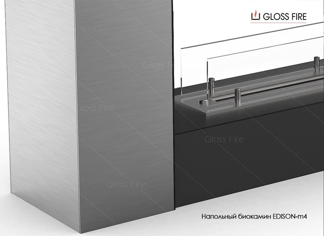 Отличительной чертой представленной модели является высококачественно декоративно отшлифованная поверхность. Камин изготовлен из нержавеющей стали. Наружная поверхность корпуса отделывается на современном оборудовании. Внутренняя часть - идеально окрашена чёрной термостойкой краской для каминов. Напольную модель биокамина можно использовать как самостоятельный элемент декора.