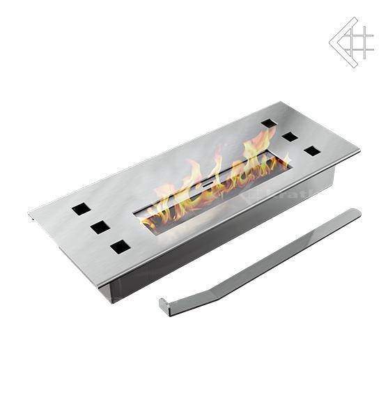 Очаг – это емкость куда заливается жидкое топливо. Емкость внутри заполняется керамическим материалом, который впитывает биотопливо, и в случае опрокидывания камина топливо не разливается. За счет этого конструкция стала полностью пожаробезопасной. Очаг встраивается в корпус из стали, который окрашивается специальной термостойкой краской, или же в заранее подготовленную нишу, изготовленную из негорючих материалов.
