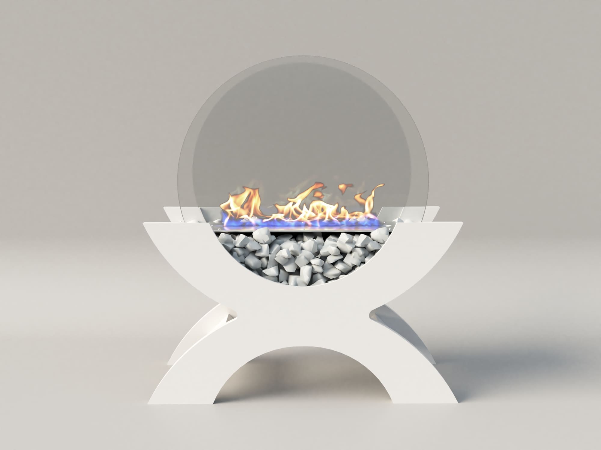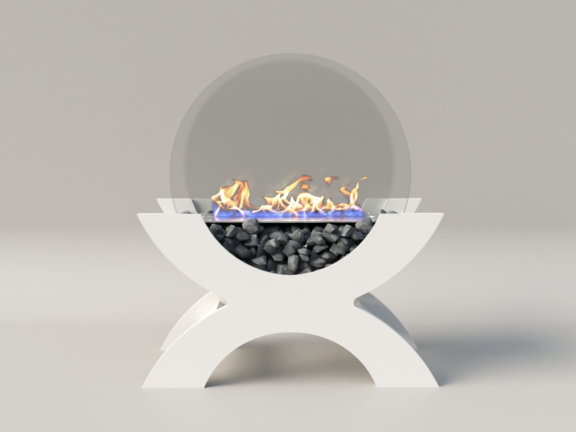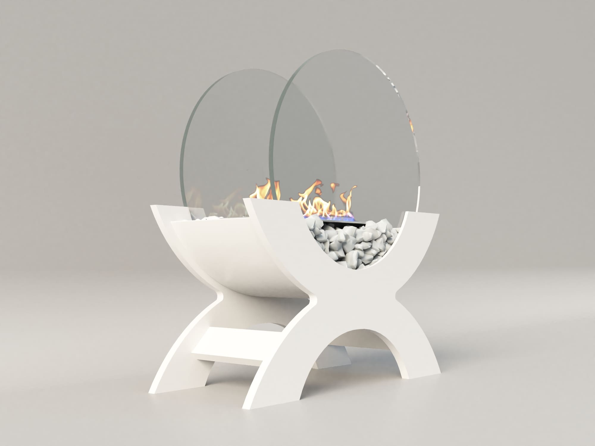 Переносной камин устанавливается на полу и не требует дымохода. Линия огня данного камина 300 мм, располагается практически по всей длине камеры сгорания. Основание биокамина — 100% сталь, ножки изготовлены из МДФ, топливный блок выполнен из высококачественной нержавеющей стали, наполнитель — керамическое волокно, а также закаленные жаропрочные стекла толщиной 6 мм, камни — галтованный мрамор.