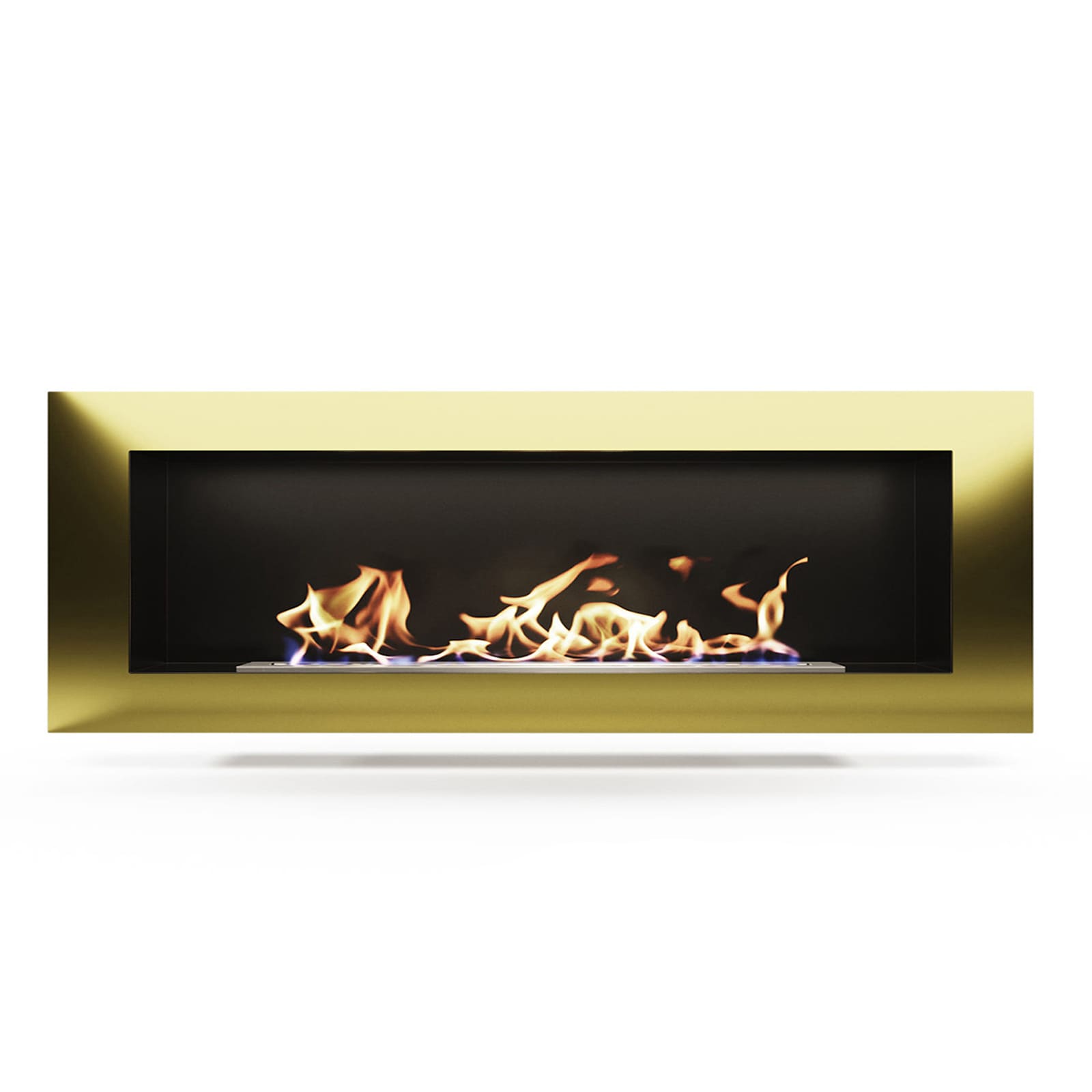 Биокамин золотого цвета, который прекрасно подойдет как встраиваемый вариант для украшения вашего дома.