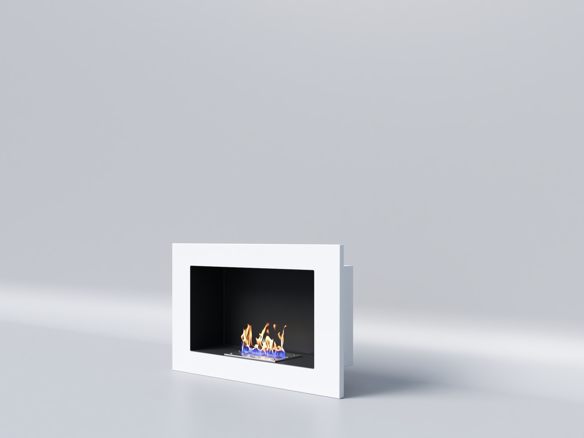 Небольшой биокамин белого цвета, который прекрасно подойдет как встраиваемый вариант для украшения вашего дома. Отлично вписывается в интерьер небольших помещений и комнат.