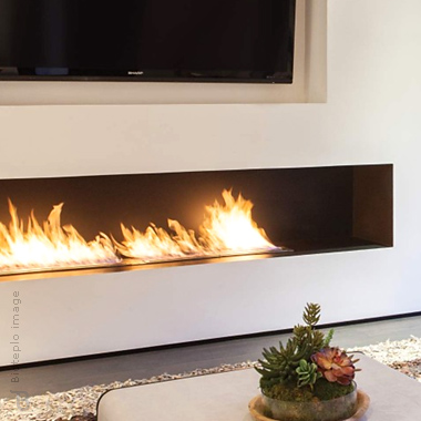 Очаг – это емкость куда заливается жидкое топливо. Емкость внутри заполняется керамическим материалом, который впитывает биотопливо, и в случае опрокидывания камина топливо не разливается. За счет этого конструкция стала полностью пожаробезопасной. Очаг встраивается в корпус из стали, который окрашивается специальной термостойкой краской, или же в заранее подготовленную нишу, изготовленную из негорючих материалов.