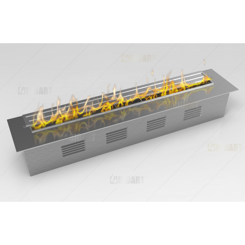 Очаг – это емкость куда заливается жидкое топливо. Емкость внутри заполняется керамическим материалом, который впитывает биотопливо, и в случае опрокидывания камина топливо не разливается. За счет этого конструкция стала полностью пожаробезопасной. Очаг встраивается в корпус из стали, который окрашивается специальной термостойкой краской, или же в заранее подготовленную нишу, изготовленную из негорючих материалов.