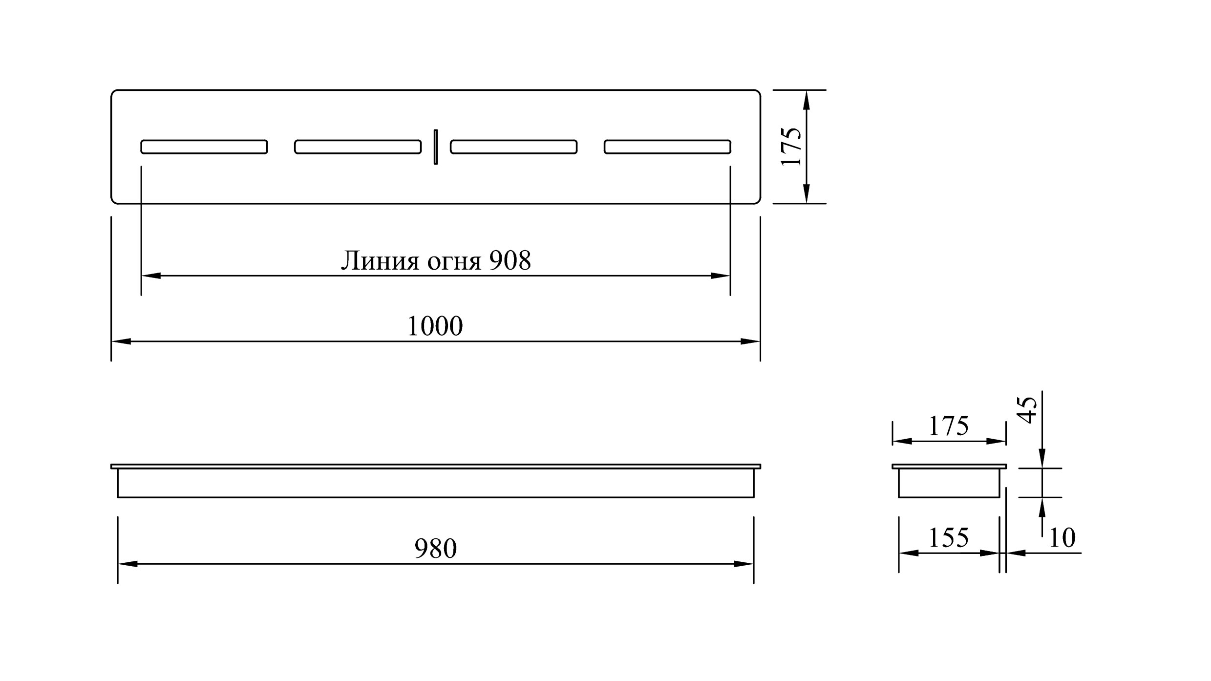 - Габаритный размер ДхШхВ (мм): 1000×175х45;