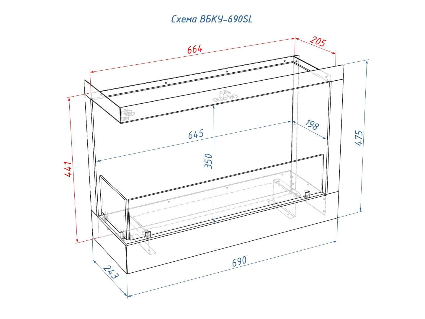 Описание встраиваемого углового биокамина Lux Fire 690 S (левый угол)