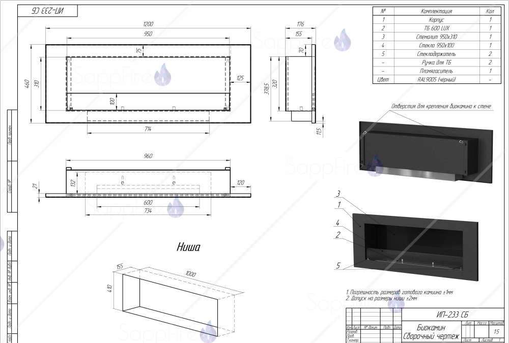 Очаг – это емкость куда заливается жидкое топливо. Емкость внутри заполняется керамическим материалом, который впитывает биотопливо, и в случае опрокидывания камина топливо не разливается. За счет этого конструкция стала полностью пожаробезопасной. Очаг встраивается в корпус из стали, который окрашивается специальной термостойкой краской, или же в заранее подготовленную нишу, изготовленную из негорючих материалов.
