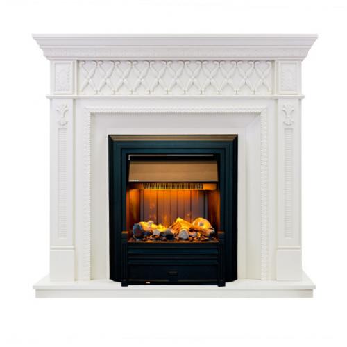 Очаг выполнен в классическом стиле, а форма его корпуса максимально точно повторяет форму камина. В передней его части сформирована имитация чугунной решетки. Выполнен очаг в черном цвете, что создает интересный констраст с поверхностью портала. Дополнительную реалистичность изделию придает Муляж дров, максимально похожий на настоящий. «Поленья» в муляже более крупные и расположены несколько хаотично, а дополнительная подсветка изнутри позволяет добиться максимальной реалистичности.Пламя в очаге создается за счет работы парогенератора и подсветки лампами, оборудованными светофильтрами. За счет последних подсвечиваются только отдельные участки паровой завесы, создавая видимость языков пламени. За счет движения пара вверх создается ощущение того, что огонь в очаге настоящий. Система реалистичного пламени Opti-Myst позволяет добиться максимальной схожести очага с дровяным камином.
