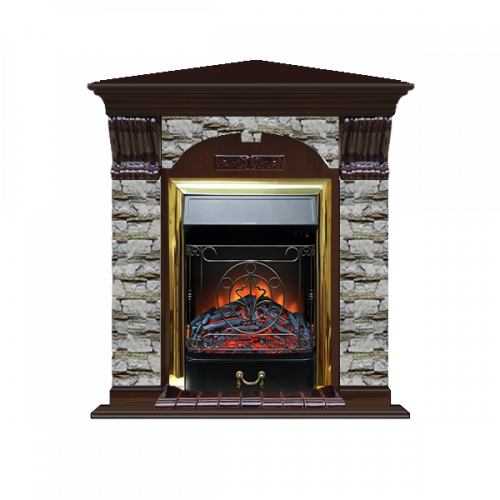 Каминокомплект Glenrich Арочный Алтай угловой (дуб)+Majestic Brass