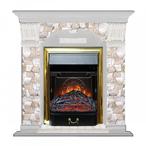 Каминокомплект Glenrich Арочный Арбат (беленый дуб)+Majestic Brass