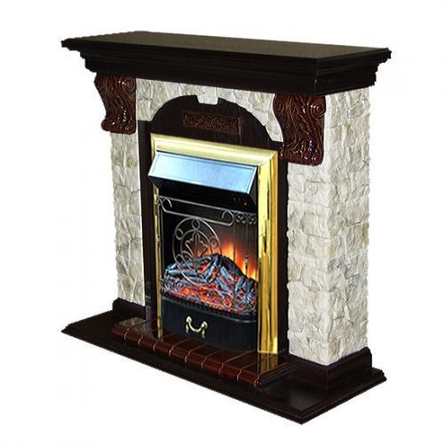 Каминокомплект Glenrich Арочный Арбат (дуб)+Majestic Brass