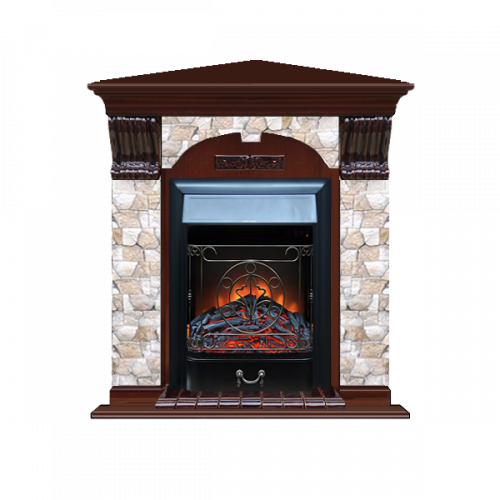 Каминокомплект Glenrich Арочный Арбат угловой (красное дерево)+Majestic Black