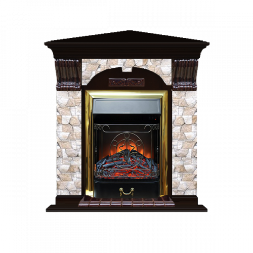 Каминокомплект Glenrich Арочный Арбат угловой (венге)+Majestic Brass