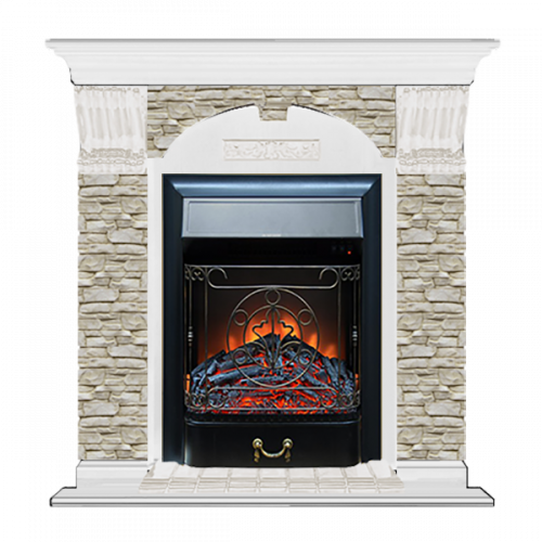 Каминокомплект Glenrich Арочный Грот однотонный (белый)+Majestic Black