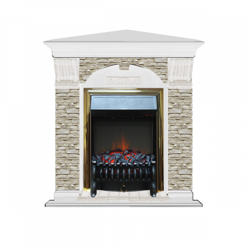 Каминокомплект Glenrich Арочный Грот однотонный угловой (белый)+Fobos Brass