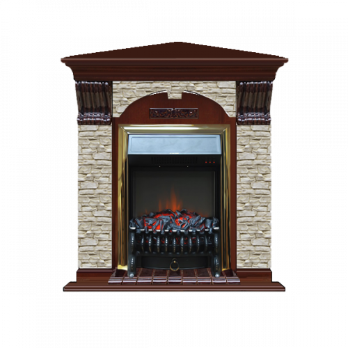 Каминокомплект Glenrich Арочный Грот однотонный угловой (красное дерево)+Fobos Brass