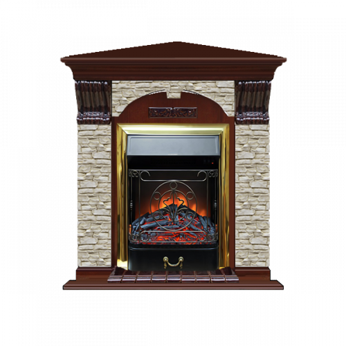 Каминокомплект Glenrich Арочный Грот однотонный угловой (красное дерево)+Majestic Brass