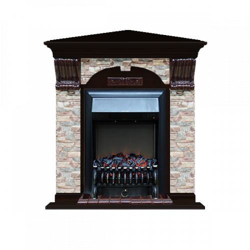 Каминокомплект Glenrich Арочный Грот цветной угловой (венге)+Fobos Black