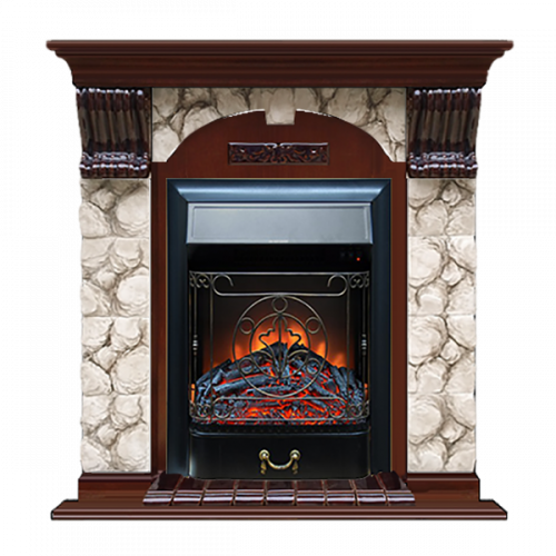 Каминокомплект Glenrich Арочный Карелия (красное дерево)+Majestic Black