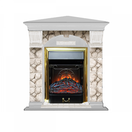 Каминокомплект Glenrich Арочный Карелия угловой (беленый дуб)+Majestic Brass