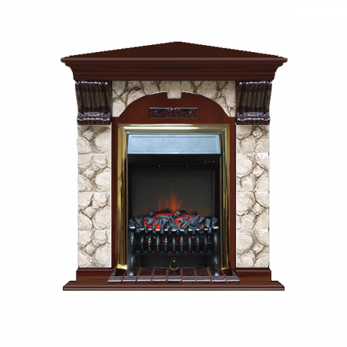Каминокомплект Glenrich Арочный Карелия угловой (красное дерево)+Fobos Brass