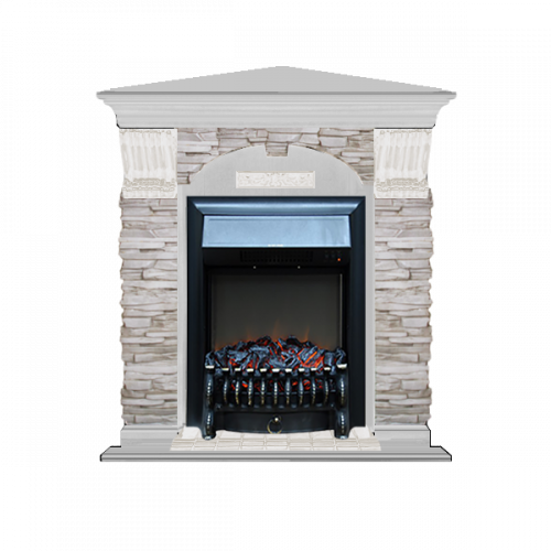 Каминокомплект Glenrich Арочный Мисхор угловой (беленый дуб)+Fobos Black