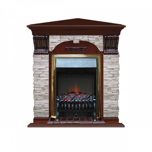 Каминокомплект Glenrich Арочный Мисхор угловой (красное дерево)+Fobos Brass