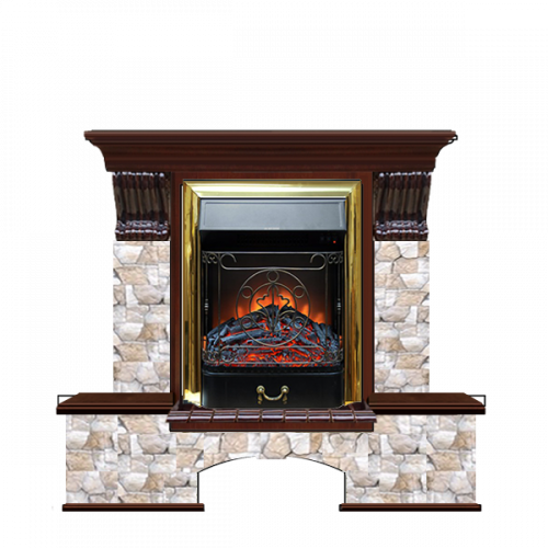 Каминокомплект Glenrich Бостон К Арбат (красное дерево)+Majestic Brass