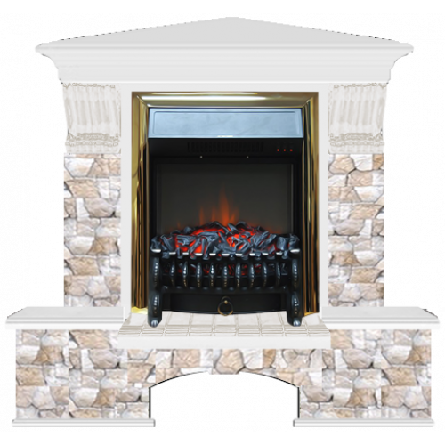 Каминокомплект Glenrich Бостон К Арбат угловой (белый)+Fobos Brass
