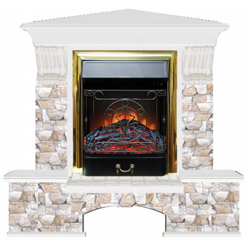 Каминокомплект Glenrich Бостон К Арбат угловой (белый)+Majestic Brass