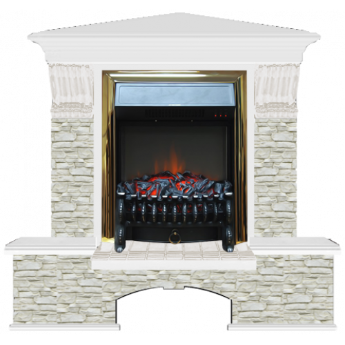Каминокомплект Glenrich Бостон К Грот однотонный угловой (белый)+Fobos Brass