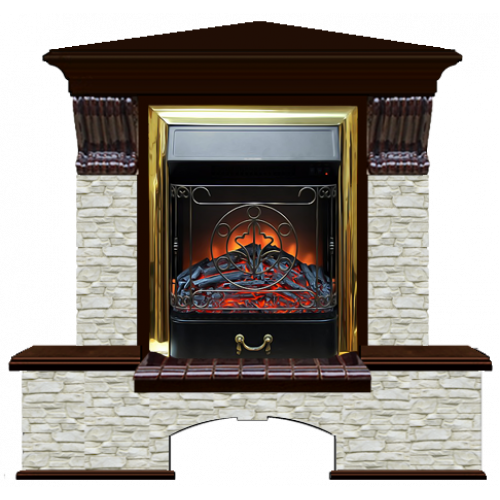 Каминокомплект Glenrich Бостон К Грот однотонный угловой (дуб)+Majestic Brass