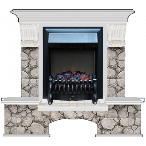 Каминокомплект Glenrich Бостон К Карелия (беленый дуб)+Fobos Black