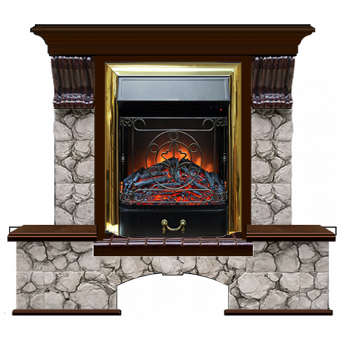 Каминокомплект Glenrich Бостон К Карелия (дуб)+Majestic Brass