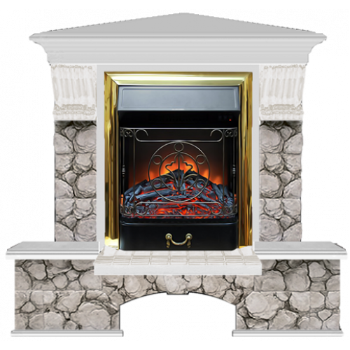 Каминокомплект Glenrich Бостон К Карелия угловой (беленый дуб)+Majestic Brass