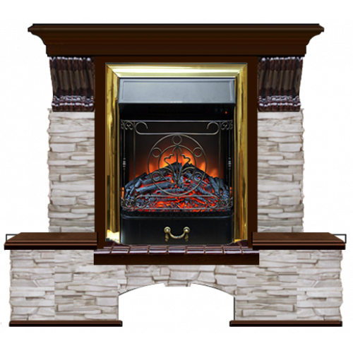 Каминокомплект Glenrich Бостон К Мисхор (дуб)+Majestic Brass