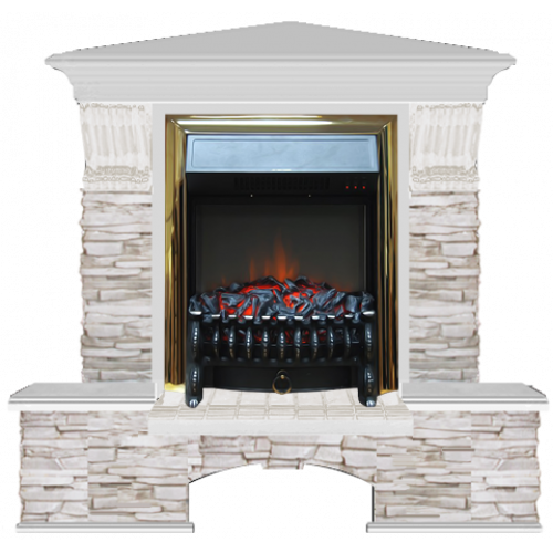 Каминокомплект Glenrich Бостон К Мисхор угловой (беленый дуб)+Fobos Brass